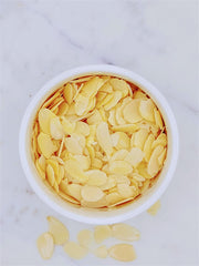 One popular version of buying almonds is almond flakes. With the outer skin removed, the blanched and thinly sliced almond flakes make an ideal topping for biscuits, cakes or even curries.